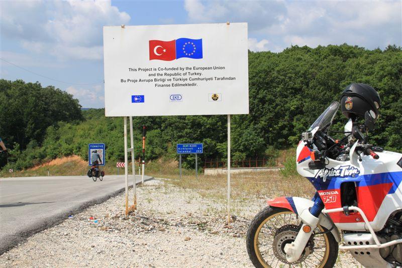 Bruno wollte am Vortag eigentlich noch tanken. Ist sich aber dann irgendwie nicht ausgegangen. Also machen wir es heute. Die erste Tankstelle ist noch zu. Also weiter, da laut David und seinem Navi (in dem Fall ein Nüvifone von Garmin) noch einige Tankstellen kommen. Ah ja. Wir reduzieren auf 50 km und dann schleichen wir fast nur mehr. Und dann, mitten im Nichts steht sie da und wartet auf uns. Also alles randvoll auffüllen und mit beherzter Fahrt die verlorene Zeit wieder aufholen. Und dann die Grenze. Zuerst die bulgarische. 2 Autos vor uns. Sonst nichts. Nach ca. 30 Minuten ist die ganze Sache erledigt. Wir werden freundlich weiter gewunken und verabschieden uns von Bulgarien. Kommen sicher wieder. Aber jetzt liegt die Türkei nur noch wenige Meter vor uns. Nach einer Kurve plötzlich Stau. Wo kommen all die Autos her?? Das wird dauern. Aber mit meiner Erfahrung im Umgang mit Behörden auf meiner Afrikareise, Davids Improvisationskunst und Brunos Gabe, mit allen ins Gespräch zu kommen, haben wir relativ rasch die erforderlichen Dokumente, zahlen unsere Abgaben und haben alles für die Einreise in die Türkei. Irrtum. An dem letzten Schranken vor der Einreise, werde ich von dem Grenzbeamten zurück geschickt. Der Grund ist, daß ich laut Eintrag mit einem Auto und nicht mit einem Motorrad unterwegs bin. Also nochmals retour, vorbei an der wartenden Schlange, (wenn Blicke töten könnten!) den Beamten auf seinen Fehler aufmerksam machen, (wieder gestorben!) aber nach 20 Minuten fertig. Rauf auf den Bock und Gas. Istanbul wir kommen!