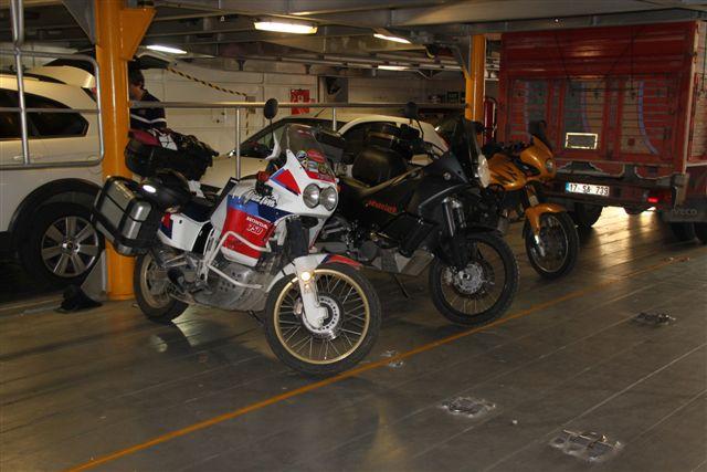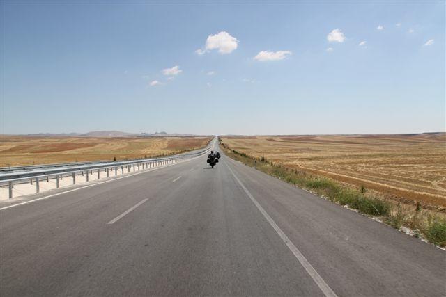 Der Wecker läutet um 05:30. Da stört es diesmal nicht, daß sich der Muezzin die Seele aus dem Leibe singt. Rein ins Gewand unter runter mit den Packtaschen. Es ist noch angenehm kühl und die Stadt ist noch relativ ruhig. Die beginnende Dämmerung verspricht einen schönen Tag. Wir fahren die kurze Strecke bis zur Fähre. Gut, daß wir uns die Strecke schon zuvor angesehen haben. Sind zeitig dran aber nicht die Ersten. Etliche Fahrzeuge sind bereits da. Wir nutzen die Zeit und schmieren unsere Ketten. Wenig später kommt Bewegung in die Warteschlange. Die Fähre öffnet ihre riesige Klappe und rein geht es in den dunklen Bauch. Wir sichern unsere Motorräder und suchen uns einen Platz. „Der wäre schön“, sagt Henry. Stimmt. Aber leider nicht unserer. Also setzen wir uns ins Restaurant und frühstücken erst mal. Die Abreise mit der Fähre hat 2 Vorteile. Du ersparst dir die Fahrt durch Istanbul und du kannst auf der Fahrt in den Süden Richtung Bursa nochmals die Silhouette Istanbul in der aufgehenden Morgensonne genießen. So macht reisen Spaß. Um 09:00 Uhr sind wir in Bursa. Wir tanken, kontrollieren die Luft, spannend wie diese türkischen Luftpumpen funktionieren und fahren Richtung Osten los. Gute Straßen und endlose Gerade führen uns Richtung Eskisehir. Vereinbart ist ein Stopp bei einer Tankstelle, um zu tanken bzw. etwas zu trinken. Dabei verlieren wir Bruno. Aber mit der heutigen Möglichkeit zur Nutzung des Handys, ist es einfach nur eine Frage der Zeit, bis man sich wieder findet. Und so ist es auch diesmal. Während wir rasten und Tee trinken, kommt auch Bruno wieder. So einfach kann es sein. Wir wollen zahlen und gehen. Und da ist er wieder, dieser so andere Türke als jener, den wir aus Wien kennen. Er läßt sich nichts bezahlen. Kann weder Deutsch noch Englisch, aber ist einfach nur nett. Ich kann es mir nur mit der sprichwörtlichen Gastfreundschaft erklären. Diese Situation wird sich auf unserer Reise noch des öfteren wiederholen. Weiter geht es nach Polatli und dann nach Haymana. Hinter Polatli fehlt der Asphalt. Kein Problem. Erstens ist es eine gute Piste, welche nur noch darauf wartet, asphaltiert zu werden und zweitens hatten wir solche Situationen schon auf vorherigen Reisen. Einziges Thema sind Steine, welche von entgegenkommenden Fahrzeugen aufgewirbelt werden und ungut werden können, falls er dich trifft. Kommen durstig in Haymana an und gehen erst mal etwas trinken. Dort werden wir wieder sehr höflich bedient. Auf die Frage, natürlich in Deutsch, wo wir nächtigen können, empfiehlt er uns das im Ort befindliche Thermenhotel. Er geht gleich mit, weil der Manager ja eh sein Schwager ist. Sehr nett. Auf die Frage, woher er denn so gut Deutsch kann, antwortet er: „ Ich bin Fleischhauer am Meiselmarkt in Wien“. Unglaublich! Mitten in Anatolien triffst du einen Menschen, der in Wien arbeitet und dir hilft. (Wer hilft in Wien schon einem Türken? Schlimm, oder?). Natürlich bekommen wir einen guten Preis und schöne Zimmer. Muß jetzt nicht erwähnen, daß wir uns im Freibecken wiederfinden, und die vor uns liegende Landschaft genießen. Toll, wie sich diese in Abhängigkeit des Lichteinfallswinkels der untergehenden Sonne verändert. Essen ist ab 20:00 Uhr. Nicht ungewöhnlich mitten im Ramadan. Und doch war es anders. Wir kommen kurz vor 20:00 Uhr in den Speisesaal und werden von den türkischen Gästen aufgefordert, rasch ans Buffet zu gehen. Sehr höflich, dachten wir. Aber wozu die Eile? Bis 20:00 Uhr und nicht ab 20:00 Uhr. So lautete der Zeitplan. Und dann steht plötzlich dieser Junge neben uns am Tisch und spricht mit uns. Türkisch. Wir versuchen es so gut es geht. Er will uns fotografieren. Na klar. So Exoten muß man knipsen. Dann kommt auch noch seine Schwester. Und die Großfamilie nickt uns wohlwollend zu. Und dann müssen wir noch versprechen, auf einen Kaffee in den Fernsehraum zu kommen. Und da sitzen sie dann. Er, das uneingeschränkte Familienoberhaupt. Und um ihn seine Frau oder Frauen, Tanten, Mütter und Kinder. Einfach alle. Unterhaltung auf türkisch, wir mit Händen und Füssen. Ich sitze neben dem Vater und er zeigt mir stolz Bilder seiner erwachsenen Söhne, die in Deutschland arbeiten. Er erzählt lange. Macht nichts, daß wir nichts verstehen. Wir haben einfach die Herzlichkeit genossen, mit welcher diese Familie uns Fremden entgegengekommen ist. Nachdem Genuß des von dem Jungen unter Mithilfe seiner Mutter zubereiteten Kaffee, gehen wir zu Bett.