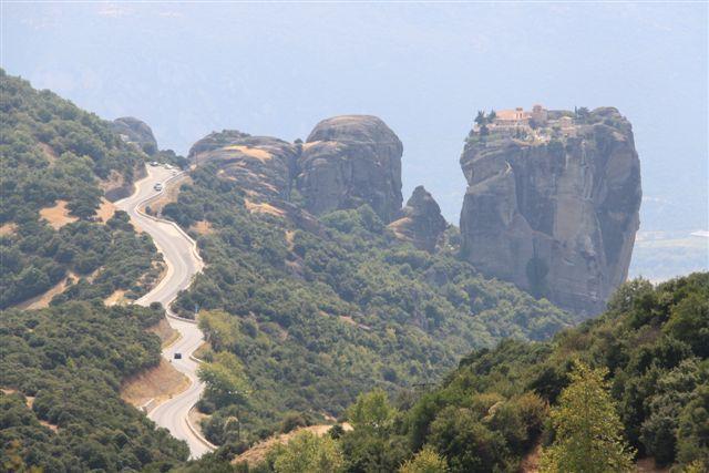 Wir vermeiden die Autobahn und befahren gute Straßen in einer herrlichen Gegend. Wenig Verkehr, kurvige Streckenabschnitte, welche über Berge mittlerer Höhe führen. Da die heutige Etappe nicht sonderlich lang ist, können wir die Sache gemütlich angehen. Wir treffen am frühen Nachmittag in Kalambaka ein, wo wir auch bald ein nettes Quartier finden. Rein in die Jean und schon besuchen wir unser erstes Kloster, Megalo Meteoro.